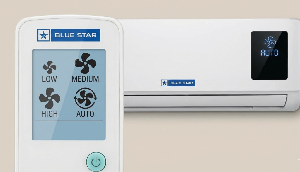 Simply put, “fan modes control how cooling is delivered, not how much cooling is delivered.” Proper fan mode selection also plays a major role in reducing electricity usage, as explained in our detailed guide on Blue Star AC power consumption and electricity saving tips.