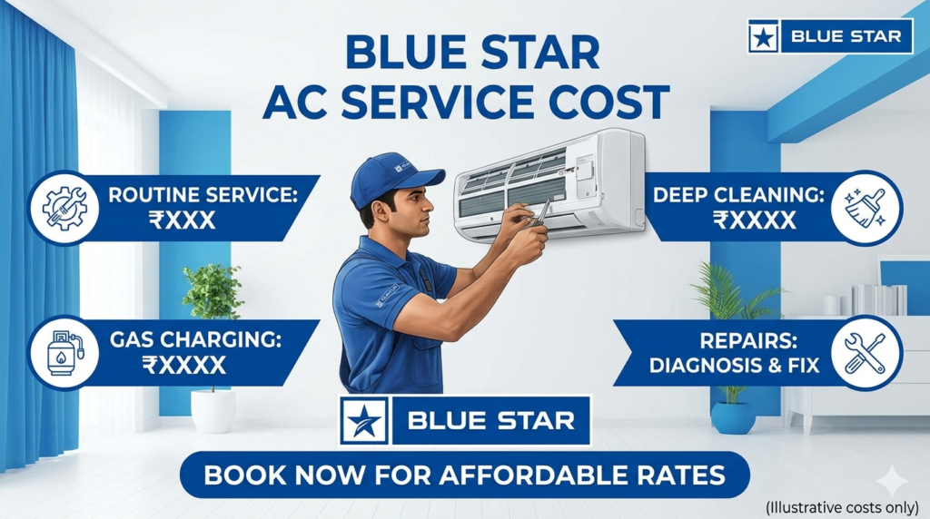 If you own a Blue Star AC, then the first thing you would want to know is: “What’s the servicing cost going to be for my Blue Star AC in India in 2026?”