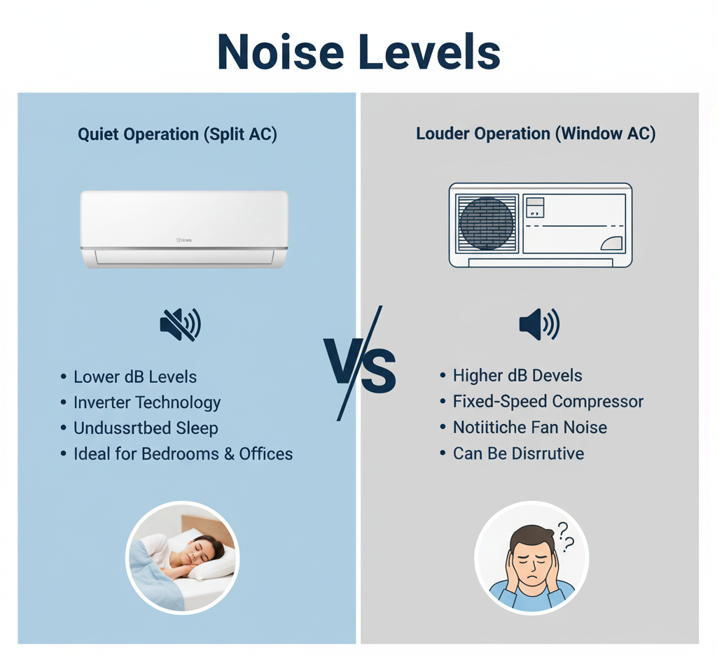 noise levels and indoor comfort. People often overlook how much noise affects comfort. A steady hum or vibration can distract you a lot. This happens especially in bedrooms or workspaces. You should check the decibel rating of your AC before you buy it.